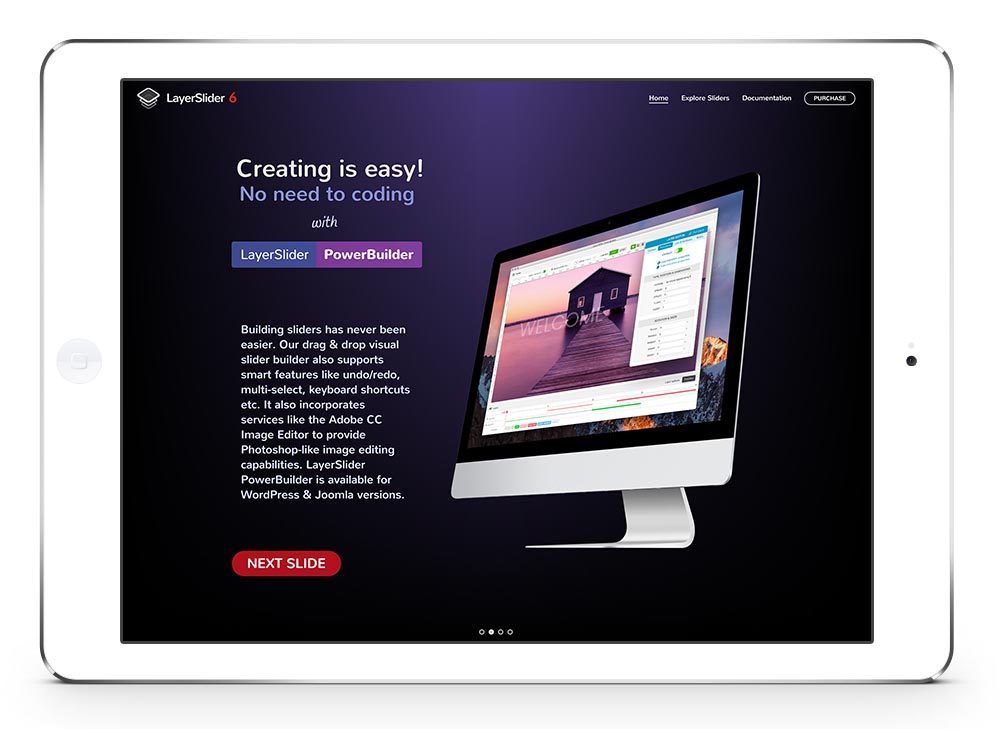 The slider works also well with graphics like an iPad or MacBook. Just create the slides in Photoshop and on your site it will look like only the display is changing.
